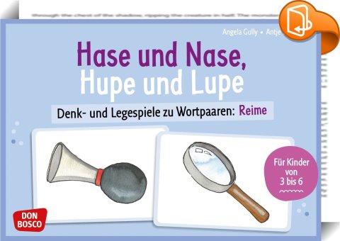 Hase und Nase, Hupe und Lupe, Denk- und Legespiele zu Wortpaaren: Reime. Wortschatztraining für Kita und Grundschule. 32 Bildkarten zur Sprachförderung mit Reimen, inklusive Begleitheft mit Spielideen, Don Bosco Medien, Angela Gully,Vorschule und Kindergarten,Schulen und Vorschulen, legespiele,wortpaare finden,reimpaare,denkspiel,lernspiele ab 5,daz material,bildkarten zur sprachförderung reime,sprachförderung spiele,denk spiele,phonologische bewusstheit übungen,grundwortschatz,wortschatztraining,auditive wahrnehmung fördern,sprachspiel,logopädie material,, , Germany, de-DEhttps://www.donbosco-medien.delegespiele,wortpaare finden,reimpaare,denkspiel,lernspiele ab 5,daz material,bildkarten zur sprachförderung reime,sprachförderung spiele,denk spiele,phonologische bewusstheit übungen,grundwortschatz,wortschatztraining,auditive wahrnehmung fördern,sprachspiel,logopädie material, [BLURB],[CITY],,books, ebooks, biblet, Book2look