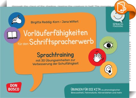 Vorläuferfähigkeiten für den Schriftspracherwerb, Sprachtraining mit 30 Übungseinheiten zur Verbesserung der Schulfähigkeit. Übungen für die Kita zu phonologischer Bewusstheit, Feinmotorik, Hörverstehen und mehr, Don Bosco Medien, Birgitta Reddig-Korn,Jana Wilfert,Vorschule und Kindergarten,Schulen und Vorschulen, bildkarten zur sprachförderung,silben klatschen kindergarten,vorschule material,wortschatztraining,logopädie material,sprachbildung kita,reime erkennen,schulfähigkeit fördern,bewegung sprachförderung,fingergymnastik übungen,phonologische bewusstheit spiele,sprachförderung karten,hörgeschichten,visuomotorische koordination,auditive wahrnehmungsspiele,, , Germany, de-DEhttps://www.donbosco-medien.debildkarten zur sprachförderung,silben klatschen kindergarten,vorschule material,wortschatztraining,logopädie material,sprachbildung kita,reime erkennen,schulfähigkeit fördern,bewegung sprachförderung,fingergymnastik übungen,phonologische bewusstheit spiele,sprachförderung karten,hörgeschichten,visuomotorische koordination,auditive wahrnehmungsspiele, [BLURB],[CITY],,books, ebooks, biblet, Book2look