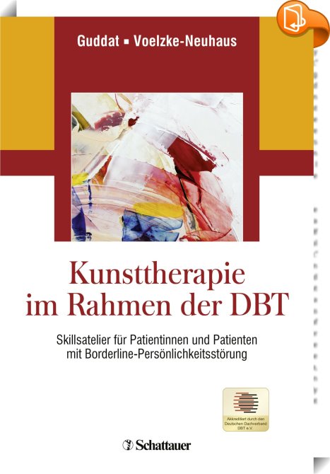 Kunsttherapie im Rahmen der DBT, Skillsatelier für Patientinnen und Patienten mit Borderline-Persönlichkeitsstörung, Schattauer, Sarah Guddat, Maik Voelzke-Neuhaus,Psychologie,Gesellschaft und Sozialwissenschaften, Dialektisch-Behaviorale Therapie,Psychotherapie,Persönlichkeitsstörung,Borderline-Persönlichkeit,Borderline,Emotionsregulation,Stresstoleranz,Achtsamkeit,Persönlichkeit,Selbstwert,Verhaltenstherapie,Kunst Borderline,Malen Therapie,Musik Therapie,Therapie Manual,Therapiemodul,, , Germany, de-DEhttp://www.klett-cotta.deDialektisch-Behaviorale Therapie,Psychotherapie,Persönlichkeitsstörung,Borderline-Persönlichkeit,Borderline,Emotionsregulation,Stresstoleranz,Achtsamkeit,Persönlichkeit,Selbstwert,Verhaltenstherapie,Kunst Borderline,Malen Therapie,Musik Therapie,Therapie Manual,Therapiemodul, [BLURB],[CITY],,books, ebooks, biblet, Book2look