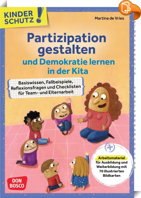 Kinderschutz: Partizipation gestalten und Demokratie lernen in der Kita, Basiswissen, Fallbeispiele, Reflexionsfragen und Checklisten für Team- und Elternarbeit. Arbeitsmaterial für Ausbildung und Weiterbildung mit 70 illustrierten Bildkarten, Don Bosco Medien, Martina de Vries,Vorschule und Kindergarten,Schulen und Vorschulen, demokratische prinzipien,demokratie kindern erklärt,rechte von kindern,reflexionsfragen,demokratiebildung,partizipation kita,demokratie bedeutung,pädagogik buch,reflexionsfragen,basiswissen,impulskarten,bildkarten,mitbestimmung,schülervertretung,demokratieerziehung schule,, , Germany, de-DEhttps://www.donbosco-medien.dedemokratische prinzipien,demokratie kindern erklärt,rechte von kindern,reflexionsfragen,demokratiebildung,partizipation kita,demokratie bedeutung,pädagogik buch,reflexionsfragen,basiswissen,impulskarten,bildkarten,mitbestimmung,schülervertretung,demokratieerziehung schule, [BLURB],[CITY],,books, ebooks, biblet, Book2look