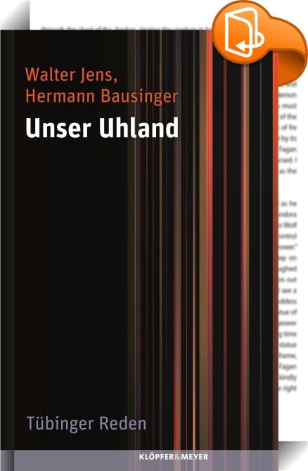 Unser Uhland, Tübinger Reden, Klöpfer&Meyer Verlag GmbH & Co. KG, Walter Jens, Hermann Bausinger,Literaturwissenschaft, allgemein,Literatur: Geschichte und Kritik, Uhland, Bausinger, Jens, Tübingen, Demokratie, Studium Generale,, , Germany, de-DEhttp://www.kloepfer-meyer.de/Uhland, Bausinger, Jens, Tübingen, Demokratie, Studium Generale, [BLURB],[CITY],,books, ebooks, biblet, Book2look