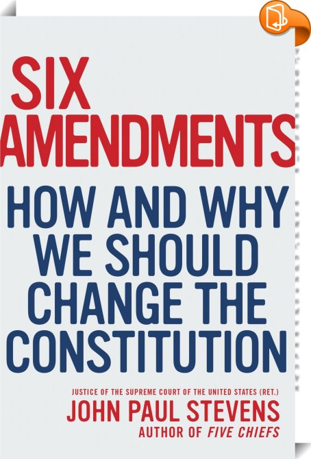 Six Amendments, How and Why We Should Change the Constitution, Little, Brown and Company, Justice John Paul Stevens,Central / national / federal government,Politics and government, supreme court;constitution;amendments;books for lawyers;judges;law students;father's day;christmas gift;gun control;campaign finance;citizens united;second amendment rights;gerrymandering;progressive;barack obama;federalism;american government,, , United States, en-UShttps://www.hachettebookgroup.comsupreme court;constitution;amendments;books for lawyers;judges;law students;father's day;christmas gift;gun control;campaign finance;citizens united;second amendment rights;gerrymandering;progressive;barack obama;federalism;american government, [BLURB],[CITY],New York,books, ebooks, biblet, Book2look