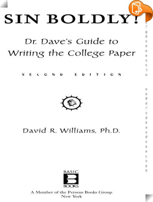 Sin Boldly!, Dr. Dave's Guide To Acing The College Paper, Basic Books, Dave Williams,Writing and editing guides,Language: reference and general, ,, , United States, en-UShttps://www.hachettebookgroup.com, [BLURB],[CITY],New York,books, ebooks, biblet, Book2look