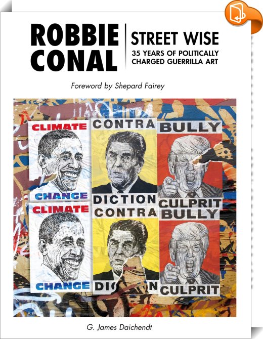 Robbie Conal, Streetwise: 35 Years of Politically Charged Guerrilla Art, Schiffer Publishing, Ltd., Schiffer,Urban arts,Public art, Robbie Conal; Social Injustice; Shepard Fairey; American Contemporary Street Artist; Reagan Administration; Street Posters; Expert Daichendt; Gut Retching; Washington Post; Emotionally Laden; guerrilla art; poster; street art; volunteer guerrilla postering army; post no bills; clay walker; art attach; not your typical political animal; Mear One; Be the Revolution; Post Gen; Table of Free Voices; Cabinet of Horrors; caricature; political protest; satire; Artburn,, , United States, en-UShttps://schifferbooks.comRobbie Conal; Social Injustice; Shepard Fairey; American Contemporary Street Artist; Reagan Administration; Street Posters; Expert Daichendt; Gut Retching; Washington Post; Emotionally Laden; guerrilla art; poster; street art; volunteer guerrilla postering army; post no bills; clay walker; art attach; not your typical political animal; Mear One; Be the Revolution; Post Gen; Table of Free Voices; Cabinet of Horrors; caricature; political protest; satire; Artburn, [BLURB],[CITY],,books, ebooks, biblet, Book2look