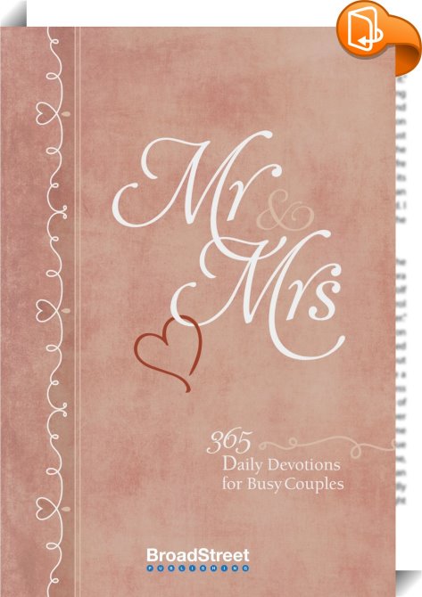 Mr & Mrs, 365 Daily Devotions for Busy Couples, BroadStreet Publishing Group, LLC, BroadStreet Publishing Group LLC,Christian life and practice,Christianity, gifts for couples;Scripture and prayer;prayers for couples;devotionals;prayer book;prayer;god’s word;inspirational;365 days of prayer;wedding gift;anniversary gift;bridal shower gift;connecting with your spouse;enriching your marriage,, , United States, en-UShttps://broadstreetpublishing.comgifts for couples;Scripture and prayer;prayers for couples;devotionals;prayer book;prayer;god’s word;inspirational;365 days of prayer;wedding gift;anniversary gift;bridal shower gift;connecting with your spouse;enriching your marriage, [BLURB],[CITY],,books, ebooks, biblet, Book2look