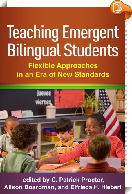 Teaching Emergent Bilingual Students, Flexible Approaches in an Era of New Standards, Guilford Publications, C. Patrick Proctor,Education of bilingual or multilingual students,Teaching of students with different educational needs, ELLs;emergent bilinguals;English as a second language;English language learners;English learners;language development;linguistic diversity;CCSS;bilingualism;Common Core State Standards;Next Generation Science Standards;cultural diversity;culturally responsive;educational policy;elementary reading methods;professional development;literacy;assessments;comprehension;instruction;students;teachers;vocabulary;writing;NGSS;language acquisition;ESL;grades K-8;grades K through 8;grades K to 8;self-determination theory;SDT;educational psychology;school psychology;biliteracy;learners;scholars;faculty;practitioners;specialists;preservice;certifications;children;kids;dialogic reading discussions;DR discussions;Language Instruction Educational Programs;LIEP;eCALLMS;guides;speaking;content learning;reform;skills;standards-aligned;activities;programs;tools;practices;strategies;classrooms;National Reading Panel;NRP;elementary schools;middle schools;academics;curriculum;metacognitive;proficiency;needs;linguistics;Kathy Escamilla;books on bilingualism;books on ESL;books on English as a second language;books for teachers;books for educators;books for professional development;books on CCSS;books on Common Core State Standards,, , United States, en-UShttp://www.guilford.comELLs;emergent bilinguals;English as a second language;English language learners;English learners;language development;linguistic diversity;CCSS;bilingualism;Common Core State Standards;Next Generation Science Standards;cultural diversity;culturally responsive;educational policy;elementary reading methods;professional development;literacy;assessments;comprehension;instruction;students;teachers;vocabulary;writing;NGSS;language acquisition;ESL;grades K-8;grades K through 8;grades K to 8;self-determination theory;SDT;educational psychology;school psychology;biliteracy;learners;scholars;faculty;practitioners;specialists;preservice;certifications;children;kids;dialogic reading discussions;DR discussions;Language Instruction Educational Programs;LIEP;eCALLMS;guides;speaking;content learning;reform;skills;standards-aligned;activities;programs;tools;practices;strategies;classrooms;National Reading Panel;NRP;elementary schools;middle schools;academics;curriculum;metacognitive;proficiency;needs;linguistics;Kathy Escamilla;books on bilingualism;books on ESL;books on English as a second language;books for teachers;books for educators;books for professional development;books on CCSS;books on Common Core State Standards, [BLURB],[CITY],New York,books, ebooks, biblet, Book2look