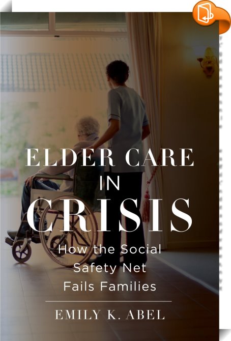 Elder Care in Crisis, How the Social Safety Net Fails Families, NYU Press, Emily K. Abel,Sociology,Sociology and anthropology, Care; Caregiving; Direct care workers; Direct care workers; Family; Aging; Friends; Long term care; Care crisis; Dementia; Stress; Burden; Statistics; Quantitative studies; Medical model; Personhood; Tom Kitwood; Dementia Reconsidered; Arthur Kleinman; Nineteenth century; Hearts of Wisdom; Dying people; Disabled people; Sick people; hospitals; Hospitals; Elder care crisis; Status quo; Direct care workers; Direct care workers; Nursing home assistants; Home health aides; Public policy; Family responsibility; Respite care; Home and community based services; Overnight respite care; Adult day care services; Nursing homes; Assisted living facilities; Guilt; Institutional placement; Message boards; On-line support groups; Political action; COVID-19; Loneliness; Visits; Visitation regulations; hospitals; Hospitals; Sheltering in place; Work; Labor force; Ai-Jen Poo; National Domestic Workers Alliance; Evelyn Nakano Glenn; Medicare; Medicaid; Elaine M. Brody; Pandemic; Care infrastructure; Joe Biden,, Health, Society, and Inequality, United States, en-USCare; Caregiving; Direct care workers; Direct care workers; Family; Aging; Friends; Long term care; Care crisis; Dementia; Stress; Burden; Statistics; Quantitative studies; Medical model; Personhood; Tom Kitwood; Dementia Reconsidered; Arthur Kleinman; Nineteenth century; Hearts of Wisdom; Dying people; Disabled people; Sick people; hospitals; Hospitals; Elder care crisis; Status quo; Direct care workers; Direct care workers; Nursing home assistants; Home health aides; Public policy; Family responsibility; Respite care; Home and community based services; Overnight respite care; Adult day care services; Nursing homes; Assisted living facilities; Guilt; Institutional placement; Message boards; On-line support groups; Political action; COVID-19; Loneliness; Visits; Visitation regulations; hospitals; Hospitals; Sheltering in place; Work; Labor force; Ai-Jen Poo; National Domestic Workers Alliance; Evelyn Nakano Glenn; Medicare; Medicaid; Elaine M. Brody; Pandemic; Care infrastructure; Joe Biden, [BLURB],[CITY],,books, ebooks, biblet, Book2look