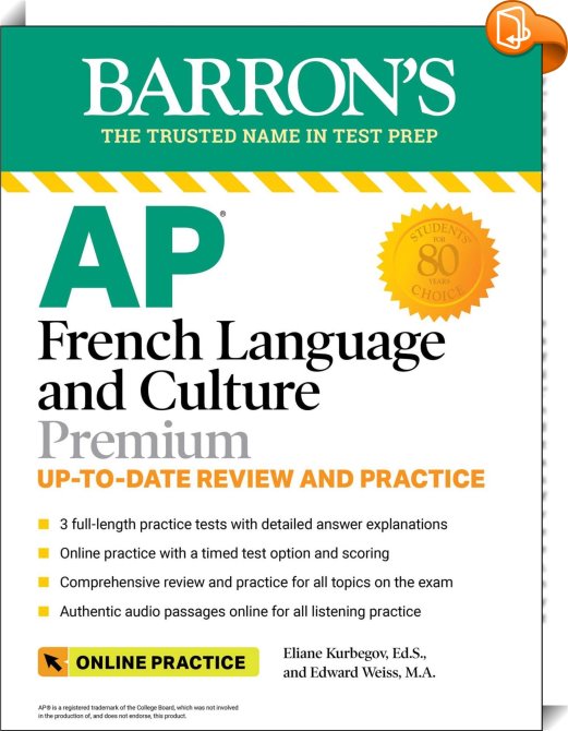 AP French Language and Culture Premium, 2023-2024: 3 Practice Tests + Comprehensive Review + Online Audio and Practice, , Barrons Educational Services, Edward Weiss, Eliane Kurbegov,Study and learning skills: general,Education / Educational sciences / Pedagogy, AP;AP test prep;AP tests;AP Study guides;AP test study guide;AP test prep books;AP prep books;AP practice tests;AP practice questions;AP exam prep books;AP exam books;Advanced Placement;Advanced Placement study guides;AP French;AP French language and culture;AP French practice;AP French exam;AP French prep;AP French study guide;French AP;Advanced Placement French;AP French Barrons;AP French Barron's;Barron's AP French;Barrons AP French,, Barron's Test Prep, United States, en-GBhttps://www.barronseduc.comAP;AP test prep;AP tests;AP Study guides;AP test study guide;AP test prep books;AP prep books;AP practice tests;AP practice questions;AP exam prep books;AP exam books;Advanced Placement;Advanced Placement study guides;AP French;AP French language and culture;AP French practice;AP French exam;AP French prep;AP French study guide;French AP;Advanced Placement French;AP French Barrons;AP French Barron's;Barron's AP French;Barrons AP French, [BLURB],[CITY],New York,books, ebooks, biblet, Book2look