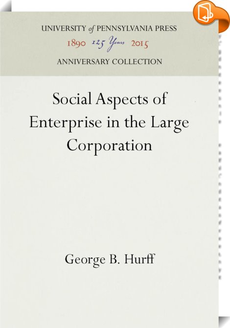 Social Aspects of Enterprise in the Large Corporation, , University of Pennsylvania Press, Inc., George B. Hurff,Sociology: work and labour,Sociology, ,, Anniversary Collection, United States, en-UShttps://www.pennpress.org, [BLURB],[CITY],,books, ebooks, biblet, Book2look