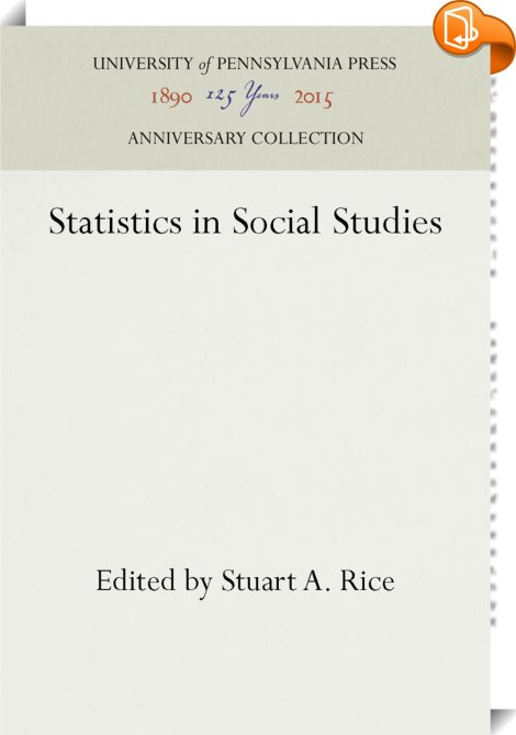 Statistics in Social Studies, , University of Pennsylvania Press, Inc., Stuart A. Rice,Social research and statistics,Sociology, ,, Anniversary Collection, United States, en-UShttps://www.pennpress.org, [BLURB],[CITY],,books, ebooks, biblet, Book2look