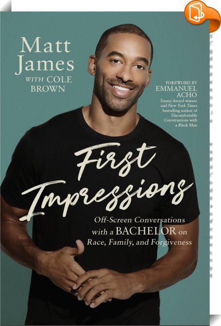 First Impressions, Off Screen Conversations with a Bachelor on Race, Family, and Forgiveness, Hachette Nashville, Matt James,Biography: general,Biography and non-fiction prose, race;black lives matter;cultural appropriation;celebrity memoir;Faith;personal memoir;Bi-racial;family;forgiveness;son;redemptive;role model;nonprofit;Dancing;stars;support;friends,, , United States, en-UShttps://www.hachettebookgroup.comrace;black lives matter;cultural appropriation;celebrity memoir;Faith;personal memoir;Bi-racial;family;forgiveness;son;redemptive;role model;nonprofit;Dancing;stars;support;friends, [BLURB],[CITY],New York,books, ebooks, biblet, Book2look