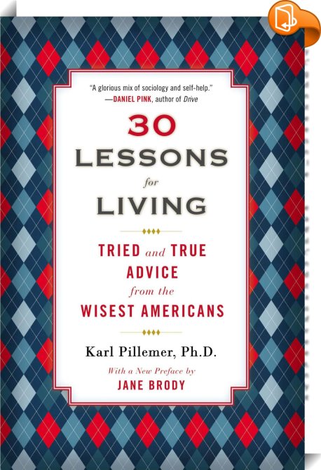 30 Lessons for Living, Tried and True Advice from the Wisest Americans, Penguin Publishing Group, Karl Pillemer,Self-help, personal development and practical advice,Health, Relationships and Personal development, anniversary gifts for men;aging;happiness;living;life;life advice;advice;wisdom;sociology;self-help;inspiration;motivational;depression;world war ii;timeless wisdom;americans;live without regret;gift;growing old;getting old;retirement gifts for men;retirement gifts;retirement gifts for women;lessons;personal development books;self help books for women;personal development;confidence;mental health gifts;self help;motivation;motivational books;inspirational books;self help books;retirement,, , United States, en-UShttps://www.penguinrandomhouse.comanniversary gifts for men;aging;happiness;living;life;life advice;advice;wisdom;sociology;self-help;inspiration;motivational;depression;world war ii;timeless wisdom;americans;live without regret;gift;growing old;getting old;retirement gifts for men;retirement gifts;retirement gifts for women;lessons;personal development books;self help books for women;personal development;confidence;mental health gifts;self help;motivation;motivational books;inspirational books;self help books;retirement, [BLURB],[CITY],,books, ebooks, biblet, Book2look