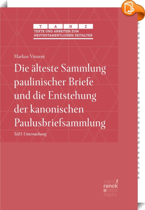 Die älteste Sammlung paulinischer Briefe und die Entstehung der kanonischen Paulusbriefsammlung, Teil I: Untersuchung, Narr Francke Attempto Verlag, Markus Vinzent,Christentum,Religion und Glaube, ,, , Germany, de-DEhttps://www.book2look.com, [BLURB],[CITY],,books, ebooks, biblet, Book2look