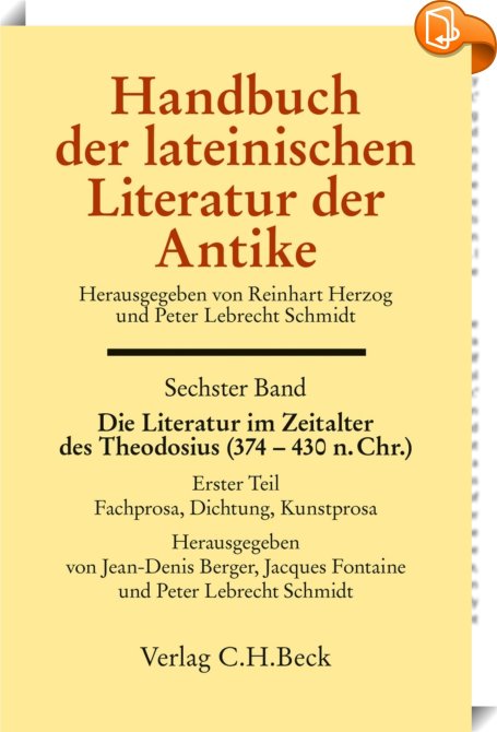 Handbuch der lateinischen Literatur der Antike Bd. 6: Die Literatur im Zeitalter des Theodosius (374-430 n.Chr.), 1. Teil: Fachprosa, Dichtung, Kunstprosa, C.H.Beck, Jacques Fontaine, Jean-Denis Berger, Peter Lebrecht Schmidt,Literaturwissenschaft: Antike, Klassik, Mittelalter,Literaturwissenschaft, allgemein, ,, , Germany, de-DEhttps://www.chbeck.de, [BLURB],[CITY],,books, ebooks, biblet, Book2look