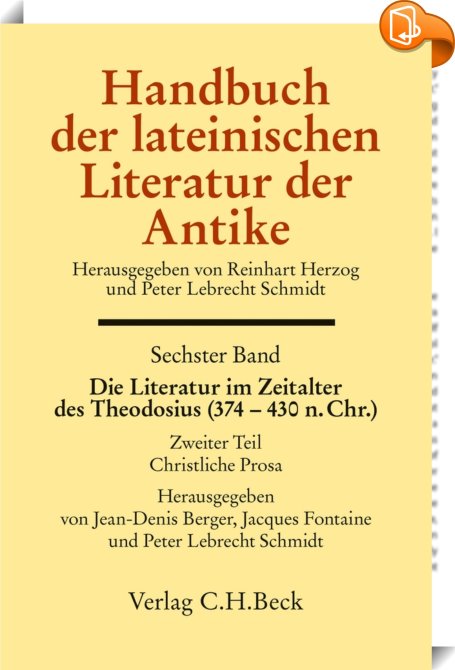 Handbuch der lateinischen Literatur der Antike Bd. 6: Die Literatur im Zeitalter des Theodosius (374-430 n.Chr.), 2. Teil: Christliche Prosa, C.H.Beck, Jacques Fontaine, Jean-Denis Berger, Peter Lebrecht Schmidt,Literaturwissenschaft: Antike und Mittelalter,Literaturwissenschaft, allgemein, ,, , Germany, de-DEhttps://www.chbeck.de, [BLURB],[CITY],,books, ebooks, biblet, Book2look