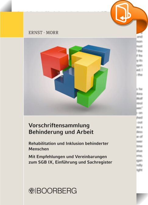 Vorschriftensammlung Behinderung und Arbeit, Rehabilitation und Inklusion behinderter Menschen - Mit Empfehlungen und Vereinbarungen zum SGB IX, Einführung und Sachregister, Richard Boorberg Verlag, Baldur Morr, Karl-Friedrich Ernst,Recht,, Behindertenrecht, Betriebliches Eingliederungsmanagement, Rehabilitationsrecht, Rehabilitationsträger, Sozialgesetzbuch,, , Germany, de-DEhttps://www.book2look.comBehindertenrecht, Betriebliches Eingliederungsmanagement, Rehabilitationsrecht, Rehabilitationsträger, Sozialgesetzbuch, [BLURB],[CITY],,books, ebooks, biblet, Book2look