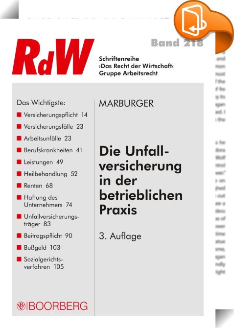 Die Unfallversicherung in der betrieblichen Praxis, , Richard Boorberg Verlag, Horst Marburger,Arbeitsrecht, allgemein,Recht bestimmter Jurisdiktionen und bestimmter Rechtsgebiete, ,, , Germany, de-DEhttps://www.book2look.com, [BLURB],[CITY],,books, ebooks, biblet, Book2look