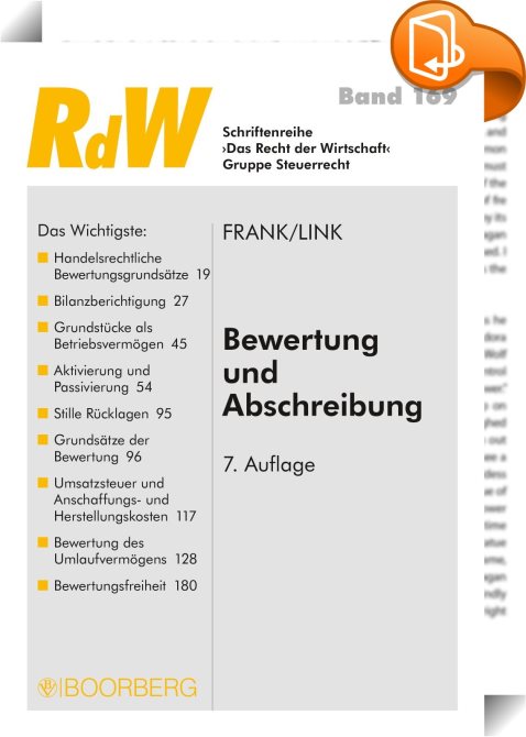 Bewertung und Abschreibung, , Richard Boorberg Verlag, Manfred Frank,Steuer- und Abgabenrecht,Recht bestimmter Jurisdiktionen und bestimmter Rechtsgebiete, ,, , Germany, de-DEhttps://www.book2look.com, [BLURB],[CITY],,books, ebooks, biblet, Book2look