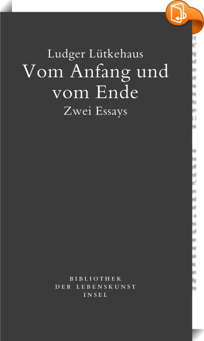 Vom Anfang und vom Ende, Zwei Essays, Insel Verlag, Ludger Lütkehaus,Ethik und Moralphilosophie,Themen der Philosophie, Anfang, Beginn, Ende, Essay, Friedrich-Nietzsche-Preis des Landes Sachsen-Anhalt 2009, Geburt, Leben, Literatur, Nichts, Philosophie, Schluss, Sterben, Thanatologie, Tod,, , Germany, de-DEhttps://www.suhrkamp.de/verlage/insel-verlag-s-22?utm_source=leseprobe&utm_medium=logo&utm_campaign=book2lookAnfang, Beginn, Ende, Essay, Friedrich-Nietzsche-Preis des Landes Sachsen-Anhalt 2009, Geburt, Leben, Literatur, Nichts, Philosophie, Schluss, Sterben, Thanatologie, Tod, [BLURB],[CITY],,books, ebooks, biblet, Book2look
