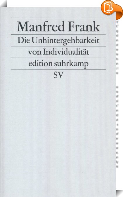 Die Unhintergehbarkeit von Individualität, Reflexionen über Subjekt, Person und Individuum aus Anlaß ihrer »postmodernen« Toterklärung, Suhrkamp Verlag, Manfred Frank,Themen der Philosophie,Philosophie, edition suhrkamp 1377, ES 1377, ES1377, Individualität, Individuum, Philosophie,, edition suhrkamp, Germany, de-DEhttps://www.suhrkamp.de?utm_source=leseprobe&utm_medium=logo&utm_campaign=book2lookedition suhrkamp 1377, ES 1377, ES1377, Individualität, Individuum, Philosophie, [BLURB],[CITY],,books, ebooks, biblet, Book2look