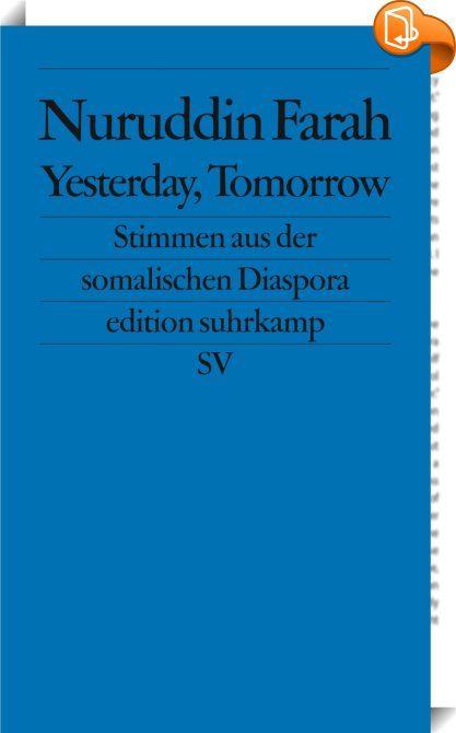 Yesterday, Tomorrow, Stimmen aus der somalischen Diaspora, Suhrkamp Verlag, Nuruddin Farah,Literaturwissenschaft: postkoloniale Literatur,Literaturwissenschaft: 1900 bis 2000, Biographie, Bürgerkrieg, edition suhrkamp 2320, Erlebnisbericht, ES 2320, ES2320, Flüchtling, Geschichte 1991-2000, Grinzane Preis für Afrika 2008, Lebensbedingungen, Ostafrika, Somalia, Somalischer Flüchtling, South African Lifetime Achievement Literary Award 2014, Subsahara-Afrika, Taschenbuch, Yesterday Tomorrow. Voices from the Somali Diaspora deutsch,, edition suhrkamp, Germany, de-DEhttps://www.suhrkamp.de?utm_source=leseprobe&utm_medium=logo&utm_campaign=book2lookBiographie, Bürgerkrieg, edition suhrkamp 2320, Erlebnisbericht, ES 2320, ES2320, Flüchtling, Geschichte 1991-2000, Grinzane Preis für Afrika 2008, Lebensbedingungen, Ostafrika, Somalia, Somalischer Flüchtling, South African Lifetime Achievement Literary Award 2014, Subsahara-Afrika, Taschenbuch, Yesterday Tomorrow. Voices from the Somali Diaspora deutsch, [BLURB],[CITY],,books, ebooks, biblet, Book2look