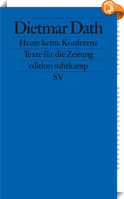 Heute keine Konferenz, Texte für die Zeitung, Suhrkamp Verlag, Dietmar Dath,Essays,Biografien und Sachliteratur, Artikel, Dietmar Dath, Essay, Horror, Journalismus, Madonna, Marx, Naturwissenschaft, Pop, Redigat, Satire, Schauspielerin, Sexyzität, Weltkrieg, Zeitung,, edition suhrkamp, Germany, de-DEhttps://www.suhrkamp.de?utm_source=leseprobe&utm_medium=logo&utm_campaign=book2lookArtikel, Dietmar Dath, Essay, Horror, Journalismus, Madonna, Marx, Naturwissenschaft, Pop, Redigat, Satire, Schauspielerin, Sexyzität, Weltkrieg, Zeitung, [BLURB],[CITY],,books, ebooks, biblet, Book2look