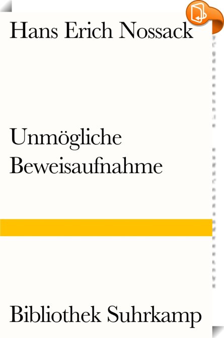 Unmögliche Beweisaufnahme, , Suhrkamp Verlag, Hans Erich Nossack,Moderne und zeitgenössische Belletristik: allgemein und literarisch,Belletristik: allgemein und literarisch, nicht nach Genre, Anklage, Beweggrund, Beweis, Beweisaufnahme, Bibliothek Suhrkamp 49, BS 49, BS49, Deutschland, Ehepaar, Einfühlen, Gericht, Literatur, Mitteleuropa, Nachkriegsliteratur, Nossack, Realität, Taschenbuch, Unschärfe, Unsicherheit, Urteil, Verhandlung, Verschwinden, Wahrheitssuche,, Bibliothek Suhrkamp, Germany, de-DEhttps://www.suhrkamp.de?utm_source=leseprobe&utm_medium=logo&utm_campaign=book2lookAnklage, Beweggrund, Beweis, Beweisaufnahme, Bibliothek Suhrkamp 49, BS 49, BS49, Deutschland, Ehepaar, Einfühlen, Gericht, Literatur, Mitteleuropa, Nachkriegsliteratur, Nossack, Realität, Taschenbuch, Unschärfe, Unsicherheit, Urteil, Verhandlung, Verschwinden, Wahrheitssuche, [BLURB],[CITY],,books, ebooks, biblet, Book2look