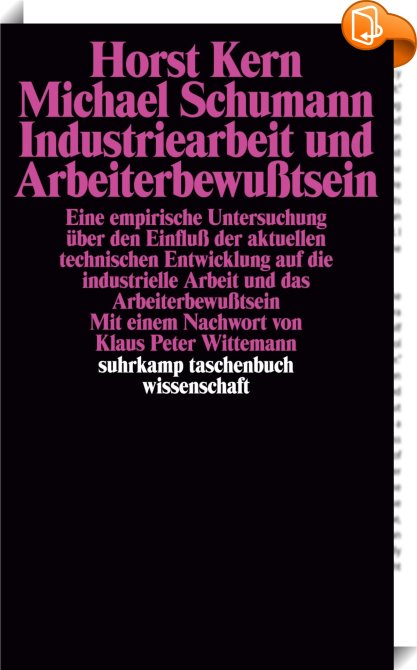 Industriearbeit und Arbeiterbewußtsein, Eine empirische Untersuchung über den Einfluß der aktuellen technischen Entwicklung auf die industrielle Arbeit und das Arbeiterbewußtsein, Suhrkamp Verlag, Michael Schumann,Soziologie: Arbeit und Beruf,Soziologie, Arbeit, Arbeiter, Arbeitszufriedenheit, Automation, Deutschland, Gesellschaftliches Bewußtsein, Industrie, Mitteleuropa, Soziologie, STW 549, STW549, suhrkamp taschenbuch wissenschaft 549, Taschenbuch, Technischer Fortschritt, Wissenschaftlich-technischer Fortschritt,, suhrkamp taschenbuch wissenschaft, Germany, de-DEhttps://www.suhrkamp.de?utm_source=leseprobe&utm_medium=logo&utm_campaign=book2lookArbeit, Arbeiter, Arbeitszufriedenheit, Automation, Deutschland, Gesellschaftliches Bewußtsein, Industrie, Mitteleuropa, Soziologie, STW 549, STW549, suhrkamp taschenbuch wissenschaft 549, Taschenbuch, Technischer Fortschritt, Wissenschaftlich-technischer Fortschritt, [BLURB],[CITY],,books, ebooks, biblet, Book2look