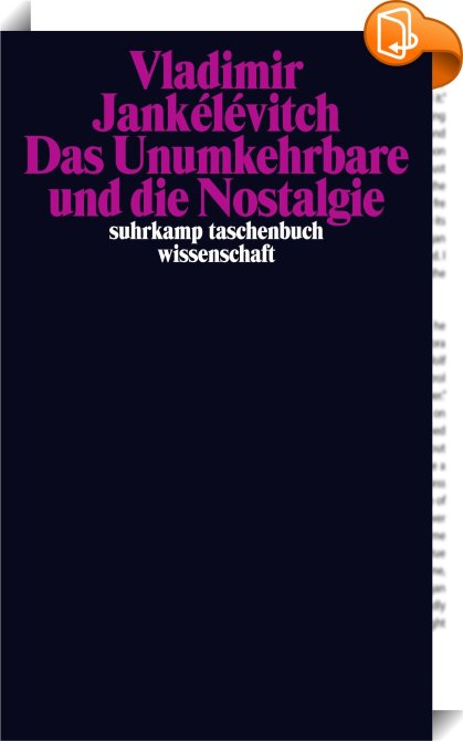 Das Unumkehrbare und die Nostalgie, , Suhrkamp Verlag, Vladimir Jankélévitch,Philosophie: Epistemologie und Erkenntnistheorie,Themen der Philosophie, Erinnerung, Moral, Ohnmacht, Philosophie, STW 2468, STW2468, suhrkamp taschenbuch wissenschaft 2468, Unmöglichkeit, Unumkehrbarkeit, Vorfreude, Zeit, Zukunft, Zurückdrehen,, suhrkamp taschenbuch wissenschaft, Germany, de-DEhttps://www.suhrkamp.de?utm_source=leseprobe&utm_medium=logo&utm_campaign=book2lookErinnerung, Moral, Ohnmacht, Philosophie, STW 2468, STW2468, suhrkamp taschenbuch wissenschaft 2468, Unmöglichkeit, Unumkehrbarkeit, Vorfreude, Zeit, Zukunft, Zurückdrehen, [BLURB],[CITY],,books, ebooks, biblet, Book2look
