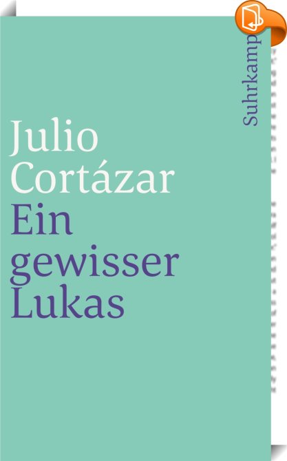 Ein gewisser Lukas, , Suhrkamp Verlag, Julio Cortázar,Moderne und zeitgenössische Belletristik: allgemein und literarisch,Belletristik: allgemein und literarisch, 20. Jahrhundert, Alltag, Argentinien, Bücher Humor, Cortázar, Erzählungen, heitere Bücher, Humor, humorvolle Bücher, Julio Cortázar, Klassiker, Komik, Lateinamerika, Leben, Lebenslust, Literatur, Lukas, lustige Bücher, Prosa, Roman, Sprache, ST 1937, ST1937, Süd- und Zentralamerika (inklusive Mexiko) Lateinamerika, Südamerika, suhrkamp taschenbuch 1937, Szenen, Un tal Lucas deutsch, witzige Bücher,, , Germany, de-DEhttps://www.suhrkamp.de?utm_source=leseprobe&utm_medium=logo&utm_campaign=book2look20. Jahrhundert, Alltag, Argentinien, Bücher Humor, Cortázar, Erzählungen, heitere Bücher, Humor, humorvolle Bücher, Julio Cortázar, Klassiker, Komik, Lateinamerika, Leben, Lebenslust, Literatur, Lukas, lustige Bücher, Prosa, Roman, Sprache, ST 1937, ST1937, Süd- und Zentralamerika (inklusive Mexiko) Lateinamerika, Südamerika, suhrkamp taschenbuch 1937, Szenen, Un tal Lucas deutsch, witzige Bücher, [BLURB],[CITY],,books, ebooks, biblet, Book2look