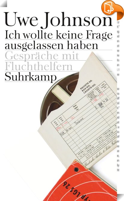 Ich wollte keine Frage ausgelassen haben, Gespräche mit Fluchthelfern, Suhrkamp Verlag, Uwe Johnson,Tatsachenberichte: Entdeckungen, Geschichte, Wissenschaft,Tatsachenberichte, allgemein, Fluchthelfer, Geschichte 1963-1964, Interview, Republikflucht,, , Germany, de-DEhttps://www.suhrkamp.de?utm_source=leseprobe&utm_medium=logo&utm_campaign=book2lookFluchthelfer, Geschichte 1963-1964, Interview, Republikflucht, [BLURB],[CITY],,books, ebooks, biblet, Book2look