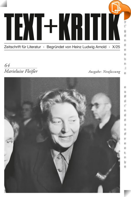 TEXT + KRITIK 64 - Marieluise Fleißer, Neufassung, edition text + kritik, Frank Gustav,Literaturwissenschaft, allgemein,Literatur: Geschichte und Kritik, 125. Geburtstag, Fleißer, Marieluise, Schriftstellerin, Suhrkamp,, TEXT+KRITIK, Germany, de-DEhttps://www.book2look.com125. Geburtstag, Fleißer, Marieluise, Schriftstellerin, Suhrkamp, [BLURB],[CITY],,books, ebooks, biblet, Book2look