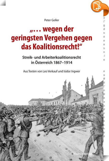 "… wegen der geringsten Vergehen gegen das Koalitionsrecht!", Streik- und Arbeiterkoalitionsrecht in Österreich 1867–1914. Aus Texten von Leo Verkauf und Isidor Ingwer, StudienVerlag, Peter Goller,Geschichte,Geschichte und Archäologie, ,, , Germany, de-DEhttps://www.book2look.com, [BLURB],[CITY],,books, ebooks, biblet, Book2look
