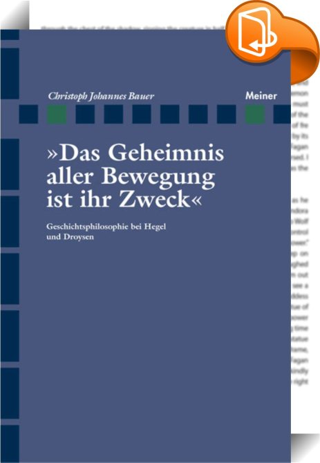 Das Geheimnis aller Bewegung ist ihr Zweck, Geschichtsphilosophie bei Hegel und Droysen, Meiner, F, Christoph J Bauer Christoph J Bauer,Westliche Philosophie: nach 1800,Philosophische Traditionen und Denkschulen, ,, , Germany, de-DEhttp://meiner.de, [BLURB],[CITY],,books, ebooks, biblet, Book2look