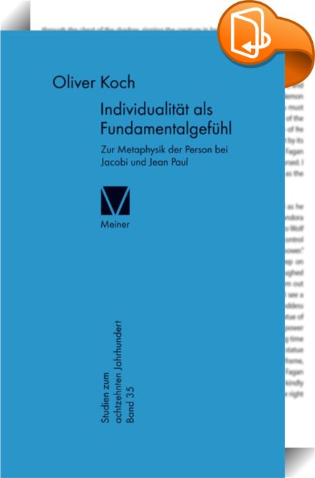 Individualität als Fundamentalgefühl, Zur Metaphysik der Person bei Jacobi und Jean Paul, Meiner, F, Oliver Koch Oliver Koch,Abendländische Philosophie: Aufklärung,Philosophische Traditionen und Denkschulen, ,, , Germany, de-DEhttp://meiner.de, [BLURB],[CITY],,books, ebooks, biblet, Book2look