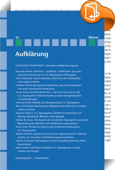 Alexander Gottlieb Baumgarten, Sinnliche Erkenntnis in der Philosophie des Rationalismus. Aufklärung, Band 20, Meiner, F, Alexander Aichele Alexander Aichele,Dagmar Mirbach Dagmar Mirbach,Abendländische Philosophie: Aufklärung,Philosophische Traditionen und Denkschulen, ,, , Germany, de-DEhttp://meiner.de, [BLURB],[CITY],,books, ebooks, biblet, Book2look