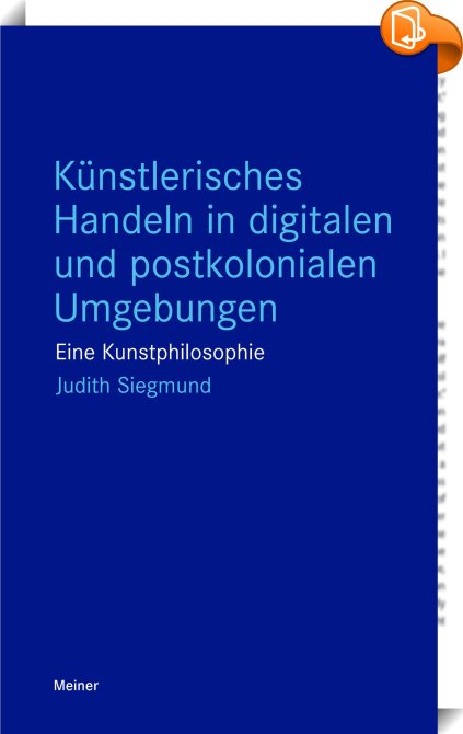 Künstlerisches Handeln in digitalen und postkolonialen Umgebungen, Eine Kunstphilosophie, Felix Meiner Verlag, Judith Siegmund,Westliche Philosophie: nach 1800,Philosophische Traditionen und Denkschulen, Ästhetik, Digitalisierung, Kunstphilosophie, Postkolonialismus,, Blaue Reihe, Germany, de-DEhttps://www.book2look.comÄsthetik, Digitalisierung, Kunstphilosophie, Postkolonialismus, [BLURB],[CITY],,books, ebooks, biblet, Book2look