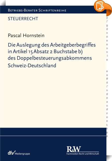 Die Auslegung des Arbeitgeberbegriffes in Artikel 15 Absatz 2 Buchstabe b) des Doppelbesteuerungsabkommens Schweiz-Deutschland, , Fachmedien Recht und Wirtschaft, Pascal Hornstein,Steuer- und Abgabenrecht,Recht bestimmter Jurisdiktionen und bestimmter Rechtsgebiete, ,, , Germany, de-DEhttps://www.book2look.com, [BLURB],[CITY],,books, ebooks, biblet, Book2look