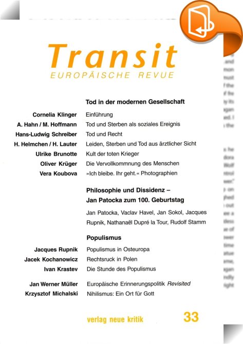 Transit 33. Europäische Revue, Tod in der modernen Gesellschaft, Verlag Neue Kritik, Cornelia Klinger, Hans-Ludwig Schreiber, Jacques Rupnik,Politikwissenschaft und politische Theorie,Politik und Staat, Jan Patocka, Populismus, Tod,, , Germany, de-DEhttps://www.book2look.comJan Patocka, Populismus, Tod, [BLURB],[CITY],,books, ebooks, biblet, Book2look