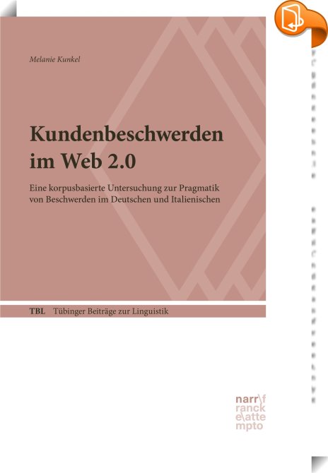 Kundenbeschwerden im Web 2.0, Eine korpusbasierte Untersuchung zur Pragmatik von Beschwerden im Deutschen und Italienischen, Narr Francke Attempto Verlag, Melanie Kunkel,Literaturwissenschaft, allgemein,Literatur: Geschichte und Kritik, ,, , Germany, de-DEhttps://www.book2look.com, [BLURB],[CITY],,books, ebooks, biblet, Book2look