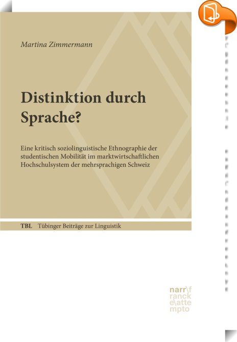 Distinktion durch Sprache?, Eine kritisch soziolinguistische Ethnographie der studentischen Mobilität im marktwirtschaftlichen Hochschulsystem der mehrsprachigen Schweiz, Narr Francke Attempto Verlag, Martina Zimmermann,Sprachwissenschaft, Linguistik,Sprache und Sprachwissenschaft, ,, , Germany, de-DEhttps://www.book2look.com, [BLURB],[CITY],,books, ebooks, biblet, Book2look