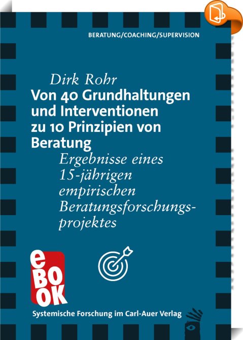 Von 40 Grundhaltungen und Interventionen zu 10 Prinzipien von Beratung, Ergebnisse eines 15-jährigen empirischen Beratungsforschungsprojektes, Carl-Auer Verlag, Dirk Rohr,Psychologie,Gesellschaft und Sozialwissenschaften, ,, , Germany, de-DEhttps://www.book2look.com, [BLURB],[CITY],,books, ebooks, biblet, Book2look