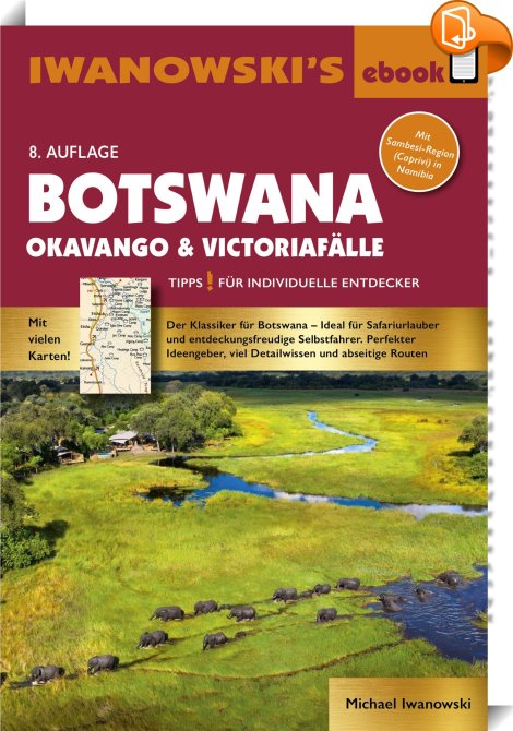 Botswana, Tipps für individuelle Entdecker, Iwanowski's Reisebuchverlag, Michael Iwanowski,Reiseführer,Reisen und Urlaub, Affenbrotbaum, Baobabs, Caprivi, Elefanten, Flussperde, Francistown, Gaborone, Geparden, Kalahari, Kasane, Khoi, Limpop Provinz, Löwen, Maun, Mokoro, Moremi Game Reserve, Okavango Delta, Safaris, Sambesi, San, Victoria Falls National Park,, , Germany, de-DEhttps://www.book2look.comAffenbrotbaum, Baobabs, Caprivi, Elefanten, Flussperde, Francistown, Gaborone, Geparden, Kalahari, Kasane, Khoi, Limpop Provinz, Löwen, Maun, Mokoro, Moremi Game Reserve, Okavango Delta, Safaris, Sambesi, San, Victoria Falls National Park, [BLURB],[CITY],,books, ebooks, biblet, Book2look