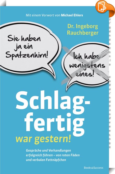 Schlagfertig war gestern!, Gespräche und Verhandlungen erfolgreich führen ? Von roten Fäden und verbalen Fettnäpfchen, books4success, Ingeborg Rauchberger,Lebenshilfe, Persönlichkeitsentwicklung und praktische Tipps,Gesundheit, Beziehungen und Persönlichkeitsentwicklung, ,, , Germany, de-DEhttps://www.book2look.com, [BLURB],[CITY],,books, ebooks, biblet, Book2look