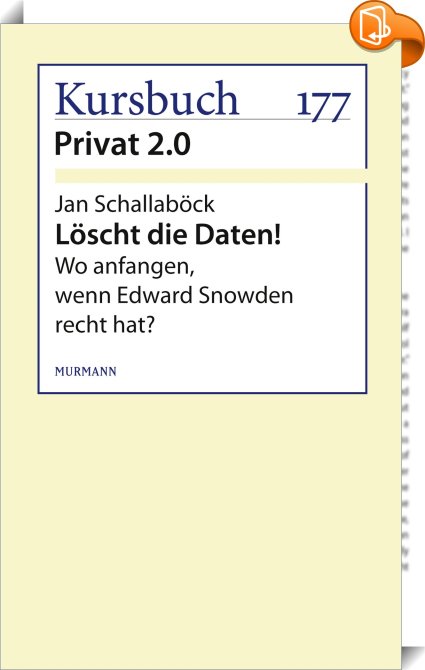 Löscht die Daten!, Wo anfangen, wenn Edward Snowden recht hat?, Murmann Publishers GmbH, Jan Schallaböck,Gesellschaft und Sozialwissenschaften,, ,, , Germany, de-DEhttps://www.book2look.com, [BLURB],[CITY],,books, ebooks, biblet, Book2look