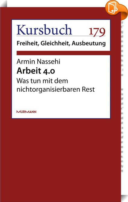 Arbeit 4.0, Was tun mit dem nicht organisierbaren Rest?, Murmann Publishers GmbH, Armin Nassehi,Gesellschaft und Sozialwissenschaften,, ,, , Germany, de-DEhttps://www.book2look.com, [BLURB],[CITY],,books, ebooks, biblet, Book2look