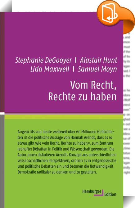 Vom Recht, Rechte zu haben, , Hamburger Edition HIS, Alastair Hunt, Lida Maxwell, Samuel Moyn, Stephanie DeGooyer,Gesellschaft und Kultur, allgemein,Gesellschaft und Sozialwissenschaften, Demokratie, Flucht, Flüchtlingskrise, Grundrecht, Hannah Arendt, Menschenrechte, Migration, Staatenlos, Staatsbürger, Ungleichheit,, , Germany, de-DEhttps://www.book2look.comDemokratie, Flucht, Flüchtlingskrise, Grundrecht, Hannah Arendt, Menschenrechte, Migration, Staatenlos, Staatsbürger, Ungleichheit, [BLURB],[CITY],,books, ebooks, biblet, Book2look