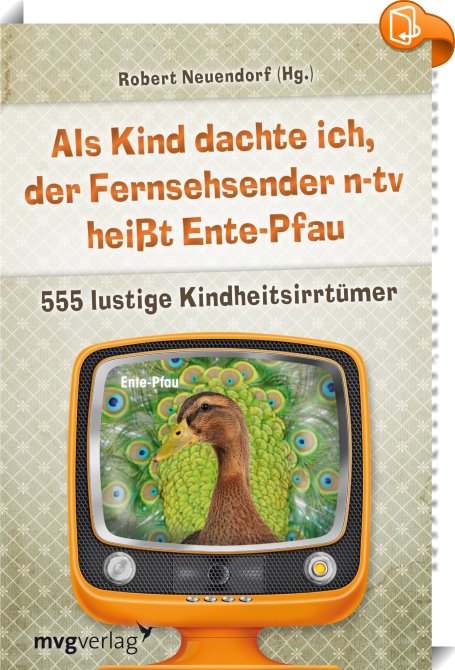 Als Kind dachte ich, der Fernsehsender n-tv heißt Ente-Pfau, 555 lustige Kindheitsirrtümer, mvg Verlag, Robert Neuendorf,Humor,Lifestyle, Hobbys und Freizeit, Kindheit, Kindheitserinnerungen, Kindheitsnostalgie,, , Germany, de-DEhttps://www.book2look.comKindheit, Kindheitserinnerungen, Kindheitsnostalgie, [BLURB],[CITY],,books, ebooks, biblet, Book2look