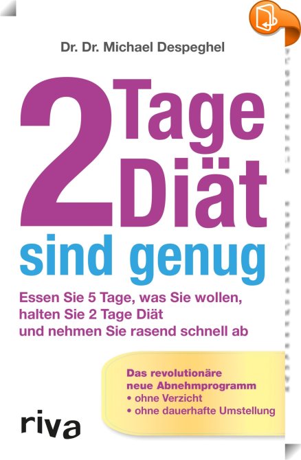 2 Tage Diät sind genug, Essen Sie 5 Tage, was Sie wollen, halten Sie 2 Tage Diät und nehmen Sie rasend schnell ab. Das revolutionäre neue Abnehmprogramm, Riva, Dr. Dr. Michael Despeghel,Familie und Gesundheit,Gesundheit, Beziehungen und Persönlichkeitsentwicklung, 2 tage fasten, 5 2 fasten erfahrungen, abendessen rezepte, abnehmen, abnehmen am bauch, abnehmen durch fasten, abnehmen ohne hunger, abnehmen ohne hungern, abnehmen ohne verzicht, abnehmen schnell, abnehmen tipps, abnehmerfolg, abnehmkonzept, bauch weg, bewegungsprogramm, buch, bücher, Diät, diät 5 2, diät abnehmen, diät rezepte, diät zum abnehmen, diätbuch, diätplan, effektiv abnehmen, effektiv trainieren, einfache rezepte, eiweiß diät, eiweißreich, eiweißreich essen, eiweißreich kochen, eiweißreiche ernährung, eiweißreiche mahlzeiten, eiweißreiche rezepte, eiweißreiche rezepte frühstück, erfolgreich abnehmen, Ernährung, ernährungsberatung, ernährungsplan, fasten, fasten abnehmen, fasten anleitung, fasten rezepte, fatburner, fettverbrennung, fitness, frühstück rezepte, gerichte zum abnehmen, gesund abnehmen, gesund und schlank, gesunde ernährung, gesunde gerichte, gesunde rezepte, gesundheit, gewicht verlieren, gewichtsverlust, idealgewicht, intermittierend, intermittierendes Fasten, intermittierendes fasten abnehmen, intermittierendes fasten ernährungsplan, intermittierendes fasten gesund, intermittierendes fasten gewichtsverlust, intermittierendes fasten plan, intervallfasten, kochbuch, kochen, kochen & backen, kochen und backen, kochen und genießen, kochrezepte, körperfett verlieren, kurzzeitfasten, lebensmittel, leckere gerichte, leckere rezepte, leicht abnehmen, mit genuss abnehmen, mittagessen rezepte, rezepte, rezepte zum abnehmen, rezeptideen, schlank, schlank und fit, schlank werden, schlanker gesünder schöner, schnell abnehmen, schnelle rezepte, schneller gewichtsverlust, sport, übergewicht, was koche ich heute,, , Germany, de-DEhttps://www.book2look.com2 tage fasten, 5 2 fasten erfahrungen, abendessen rezepte, abnehmen, abnehmen am bauch, abnehmen durch fasten, abnehmen ohne hunger, abnehmen ohne hungern, abnehmen ohne verzicht, abnehmen schnell, abnehmen tipps, abnehmerfolg, abnehmkonzept, bauch weg, bewegungsprogramm, buch, bücher, Diät, diät 5 2, diät abnehmen, diät rezepte, diät zum abnehmen, diätbuch, diätplan, effektiv abnehmen, effektiv trainieren, einfache rezepte, eiweiß diät, eiweißreich, eiweißreich essen, eiweißreich kochen, eiweißreiche ernährung, eiweißreiche mahlzeiten, eiweißreiche rezepte, eiweißreiche rezepte frühstück, erfolgreich abnehmen, Ernährung, ernährungsberatung, ernährungsplan, fasten, fasten abnehmen, fasten anleitung, fasten rezepte, fatburner, fettverbrennung, fitness, frühstück rezepte, gerichte zum abnehmen, gesund abnehmen, gesund und schlank, gesunde ernährung, gesunde gerichte, gesunde rezepte, gesundheit, gewicht verlieren, gewichtsverlust, idealgewicht, intermittierend, intermittierendes Fasten, intermittierendes fasten abnehmen, intermittierendes fasten ernährungsplan, intermittierendes fasten gesund, intermittierendes fasten gewichtsverlust, intermittierendes fasten plan, intervallfasten, kochbuch, kochen, kochen & backen, kochen und backen, kochen und genießen, kochrezepte, körperfett verlieren, kurzzeitfasten, lebensmittel, leckere gerichte, leckere rezepte, leicht abnehmen, mit genuss abnehmen, mittagessen rezepte, rezepte, rezepte zum abnehmen, rezeptideen, schlank, schlank und fit, schlank werden, schlanker gesünder schöner, schnell abnehmen, schnelle rezepte, schneller gewichtsverlust, sport, übergewicht, was koche ich heute, [BLURB],[CITY],,books, ebooks, biblet, Book2look