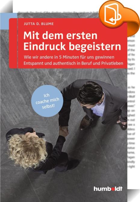 Mit dem ersten Eindruck begeistern, Wie wir andere in 5 Minuten für uns gewinnen. Entspannt und authentisch in Beruf und Privatleben. Ich coache mich selbst!, Humboldt, Jutta D. Blume,Lebenshilfe, Persönlichkeitsentwicklung und praktische Tipps,Gesundheit, Beziehungen und Persönlichkeitsentwicklung, ,, , Germany, de-DEhttp://www.humboldt.de/, [BLURB],[CITY],,books, ebooks, biblet, Book2look